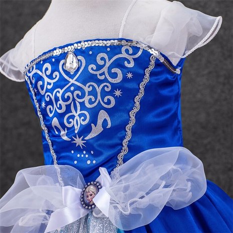 Een prachige jurk prinsessen jurk van Assepoester. Voorzien van mooie broche met afbeelding van Assepoester.