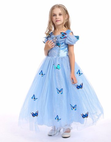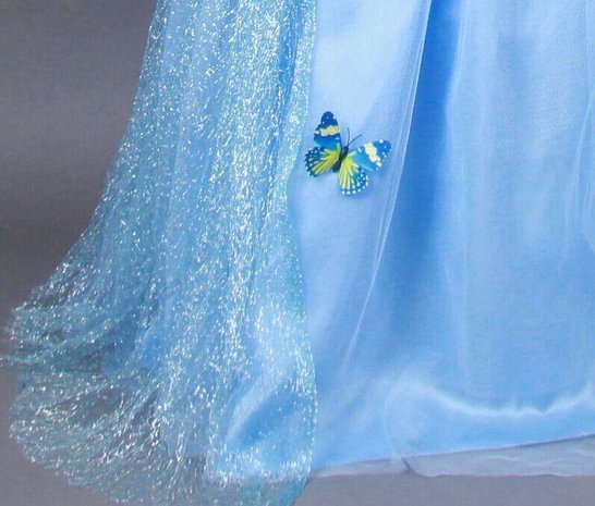 Nieuwste jurk in onze verzameling. De absolute favoriet van onze dochters en een hit in de VS op dit moment. Een unieke Assepoester prinsessen jurk met 3D vlinders. Hiermee is elk meisje het stralende middelpunt. De 3D vlinders kan uw prinses naar eigens smaak indelen. De jurk is gemaakt van hele zachte stof in maar diverse lagen. De buitenste laag is deels kneedbaar waardoor deze mooi naar buiten blijft staat. Een pracht jurk voor een pracht van een prinses. Nu tijdelijk als introductie voor maar 24,95.